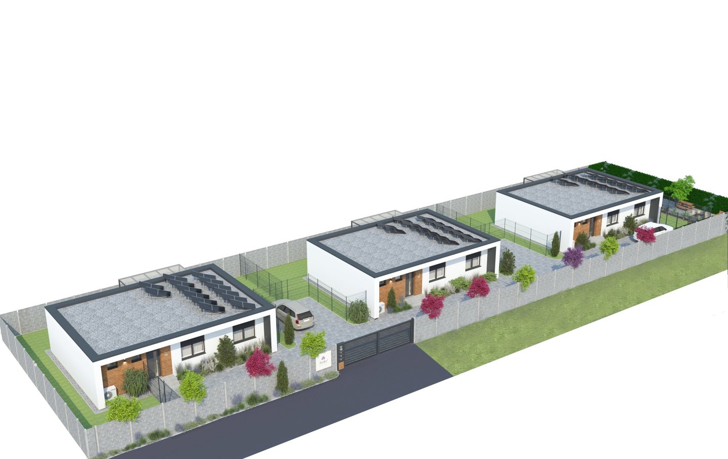 Rezidenčná zóna 3 rodinných domov s komunitnou záhradou a vlastným parkovaním,