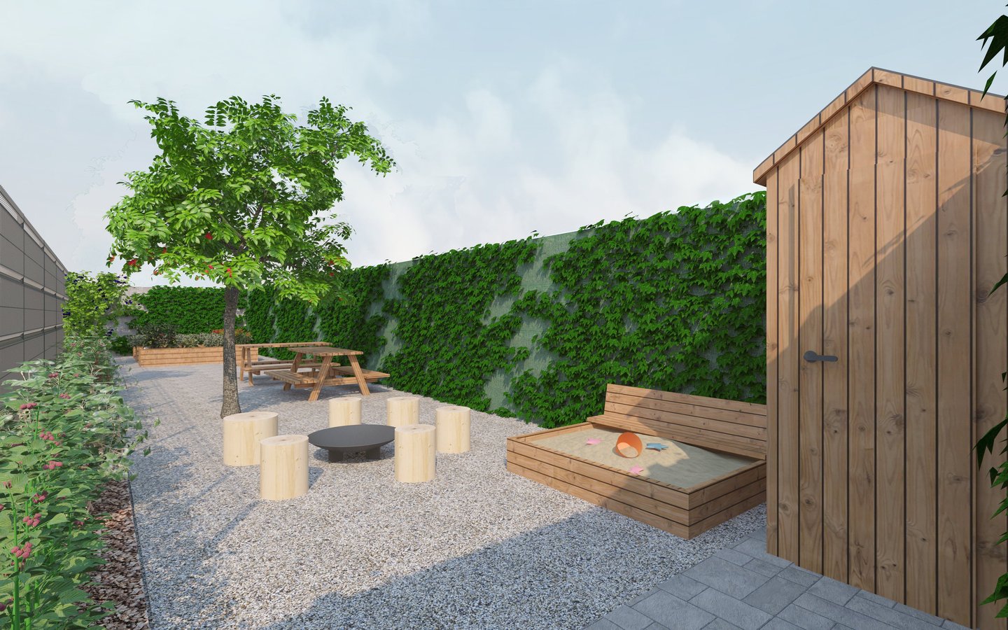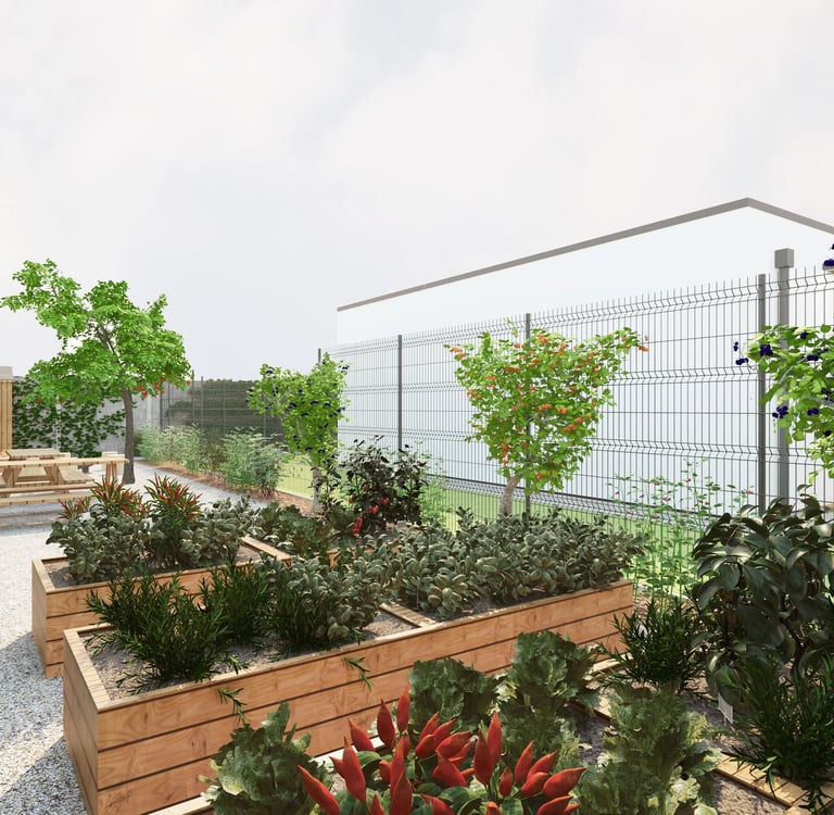 V rámci rezidencie je k disposicí aj komunitná záhrada, ktorú môžu využívať všetci rezidenti,