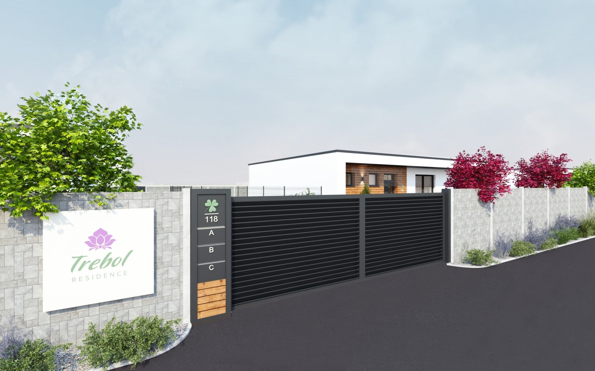 Rezidencia Trebol s plochou 1140m2 je uzavretý komplex, navrhnutý s dôrazom na súkromie, bezpečnosť a vysoký štandard bývania